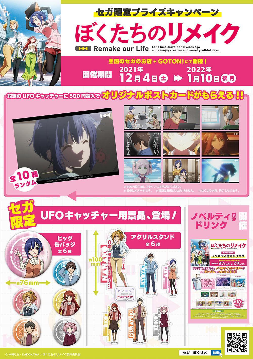 全国のセガのゲームセンターとネットキャッチャー「GOTON!」限定で『ぼくたちのリメイク』UFOキャッチャー用景品が登場!